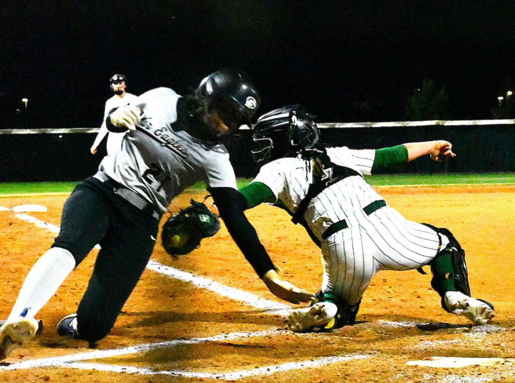Catawba Ridge catcher Mia Kovacs goes for a tag during the Copperheads season opener against Gray Collegiate Academy.