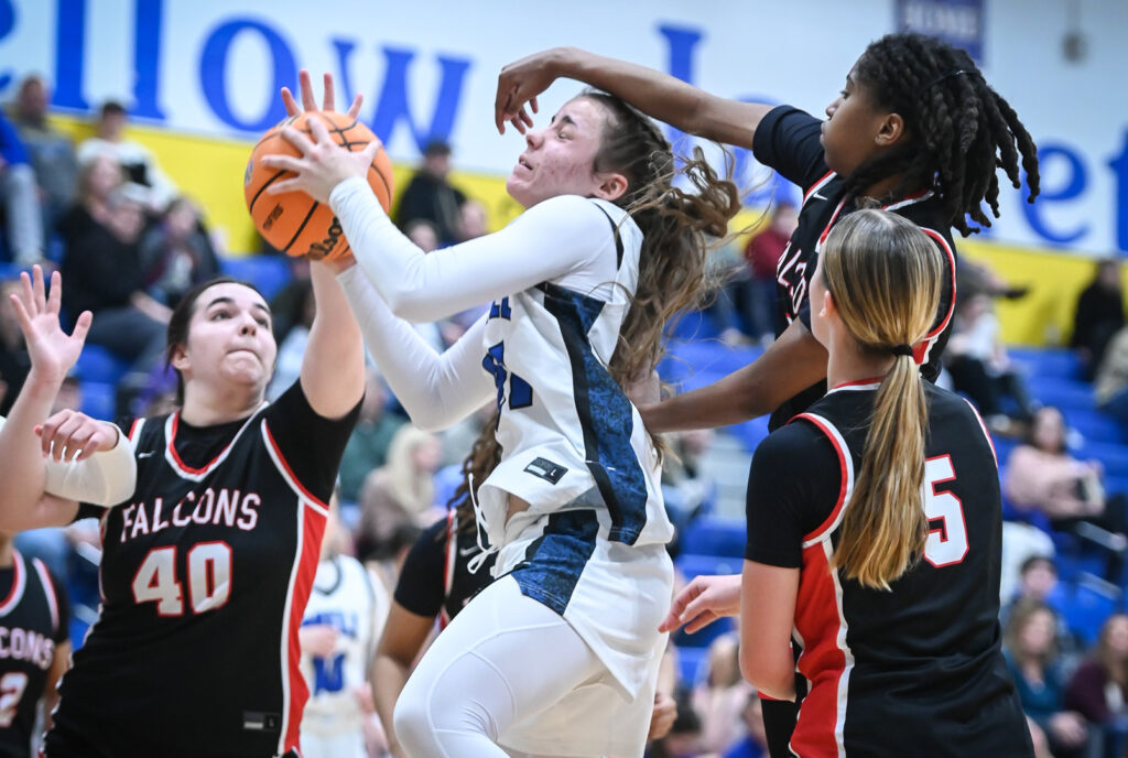 Eighth-grade guard Journi Berry and junior guard Vivian Bunting each added five points. Mia Kurowski scored seven points for the Lady Falcons.