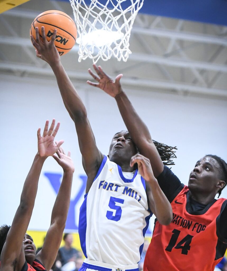 Walters scored all of Nation Ford’s nine third-quarter points to keep his team in the contest. Down 52-40 heading into the final quarter, Nation Ford was forced to foul Fort Mill players more often and hope for easier shots.